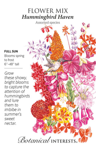 Make you garden a hummingbird haven! Hummingbirds will not only be attrctted to your garden, but it will provide nectar for the tiny, bright creatures, while presenting you with a glorious array of vivid floral colors that will last spring to fall for your enjoyment as well. Attracts other pollinators, too!