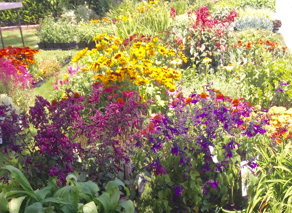 Nasturtium, lupine, dark color hollyhocks, zinnia, butterfly weed, Texas sage, phlox, spider plant, godetia, bee balm, columbine, larkspur, penstemon, red-hot poker, standing cypress, foxglove, flowering tobacco, coral bells.